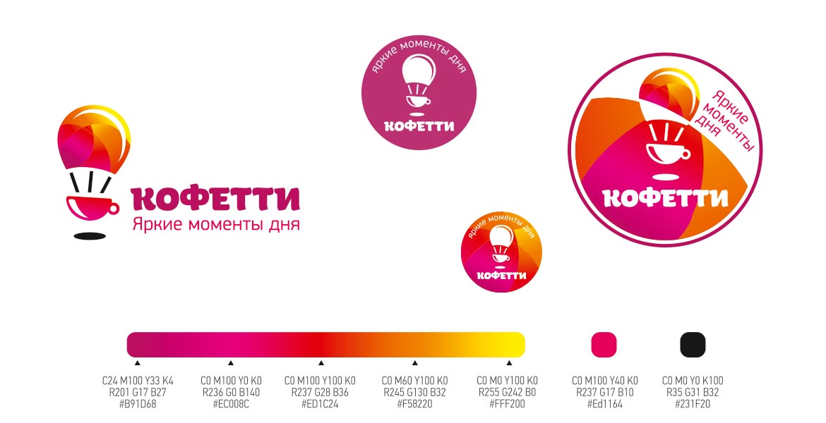В логотипе нарисовали воздушный шар с чашечкой кофе вместо корзины – яркий и запоминающийся образ, который предвещает лёгкий день, если он начинается с кофе.