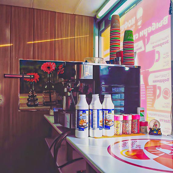 Поэтому решили, что быть кофейне ярких цветов и с названием на русском языке.
