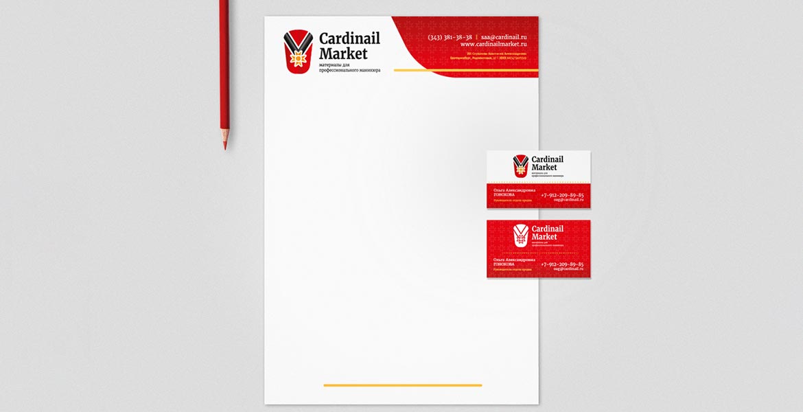 А для «Cardinail Market» разработали визитки и фирменный бланк.